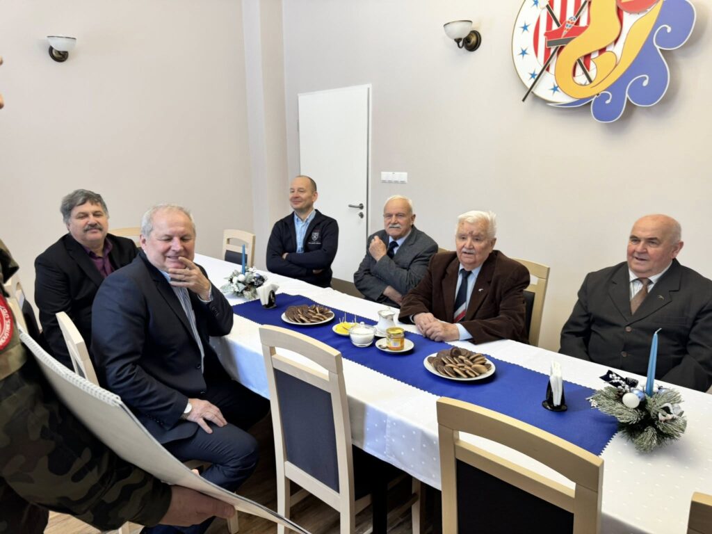 Szanowny Jubilat przybył do nas w towarzystwie swoich przyjaciół Pana ppłk. rez. pil. inż. Mariana ZIĘBY oraz Burmistrza Seniora Pana Zbigniewa GRZESIAKA wraz z przedstawicielami fundacji.